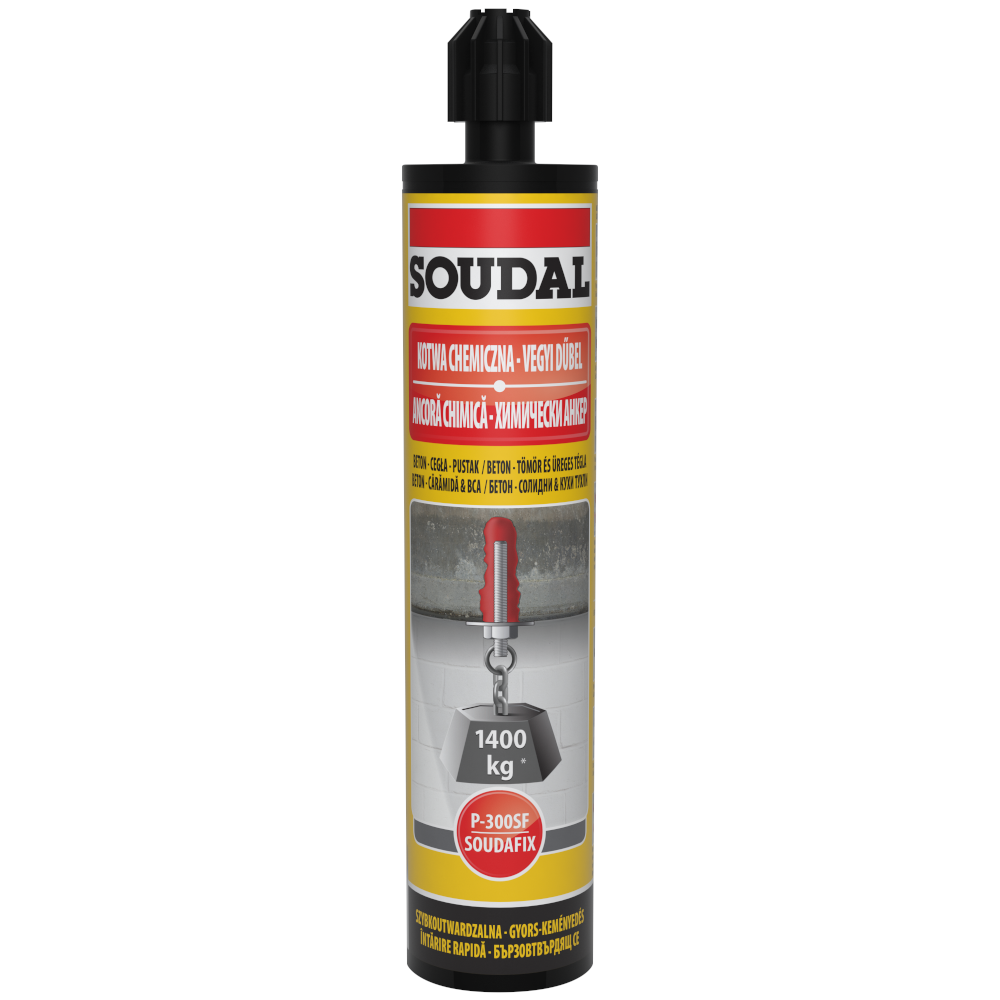 Ancora chimica Soudal Soudafix P300-SF este destinata fixarii fara presare a suruburilor autofiletante, carligelor filetate si barelor de ranforsare in materiale solide sau in cele care au goluri interioare. De asemenea o poti utiliza si ca mortar de reparatii. Aceasta are o rezistenta chimica ridicata si proprietati mecanice foarte bune, O poti aplica inclusiv pe suprafete umede. Ancora chimica se usuca fara crapaturi. Utilizare: Ancora chimica este potrivita pentru instalarea boilerelor, raft
