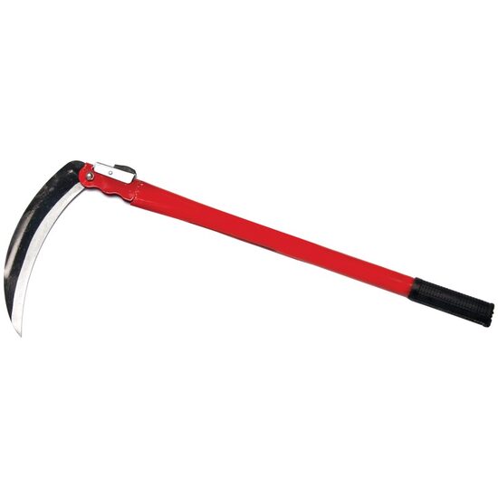 Descriere: Secera cu coada metalica rabatabilaUtilizare: taierea cocenilor dupa recoltarea porumbului ; taiere stufarisLama din tabla de otel amprentata pentru rigidizare si brunata pentru protectie impotriva coroziunii; grosime 1.6 – 0.7 mm; lungime 230 mm; latime 40 mmCoada din teava de otel A3 cu lungimea 50 cm, protectie din plastic cu profil antialunecareButon pentru actionarea mecanismului de rabatare a lamei